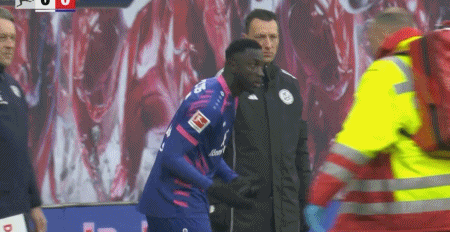 第14分钟,霍勒巴赫无对抗情况下受伤,被担架抬下
