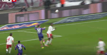 第40分钟,康拉德-哈德头球破门,莱比锡1-0领先