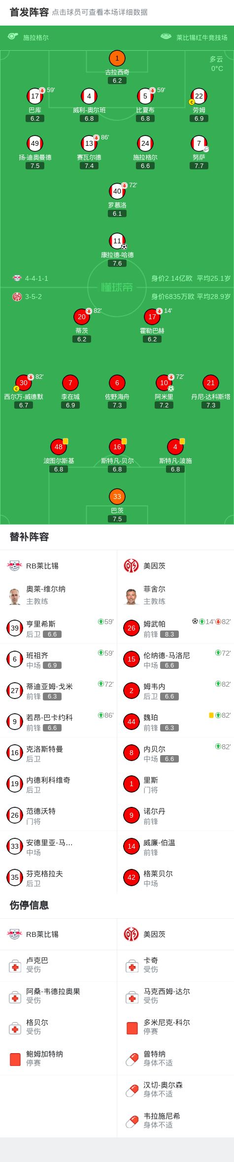 - 莱比锡1-2美因茨,阿米里点射,姆武帕建功,哈德进球难救主