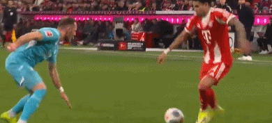 第45分钟,凯恩再次操刀破门,完成梅开二度好戏,拜仁再度领先,2-1!